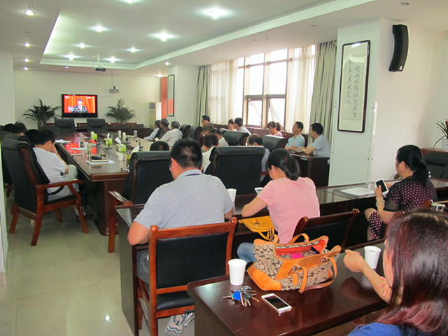 7月1日上午,市经信委全体干部职工在委会议室集中观看了庆祝中国共产党成立95周年大会,认真聆听了习近平总书记在大会上发表的题为“不忘初心 继续前进”的重要讲话内容。
